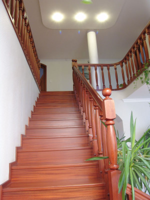 Mahagóni lépcsőMahagónifa lépcső, esztergált korláttal