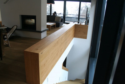 Lépcsőlapok és korlát, komódTölgy lépcső kapaszkodóval, lerakóasztal