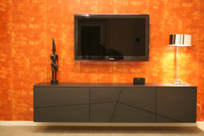 Nappali bútorNappali bútor falburkolattal, lebegőpolcokkal (részlet)