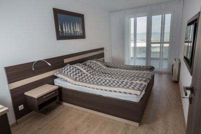Ágy gardróbbalÁgy, mögötte tolóajtós gardróbszekrény